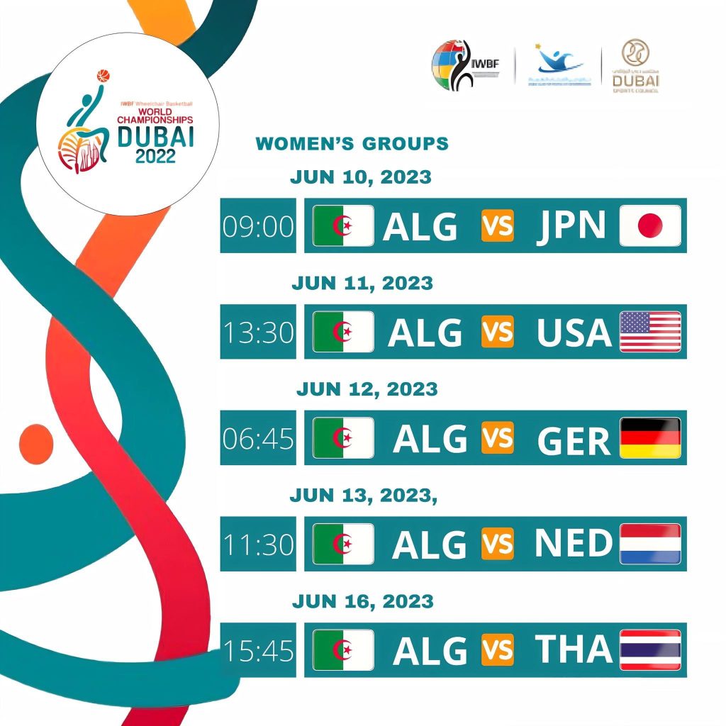وتستهل سيدات المنتخب الوطني الجزائري المنافسة، يوم غد 10 جوان الدور الأول ، بلقاء صعب أمام منتخب اليابان على ان تكون المقابلة الثانية امام من الولايات المتحدة (يوم 11 جوان ) ثم ألمانيا (يوم 12 جوان) وهولندا (يوم 13 جوان) ختامًا بمواجهة تايلاند يوم 16 جوان