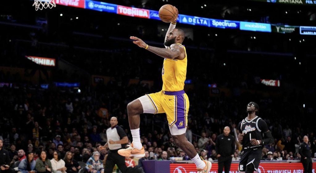 تالق لاعب نادي لوس انجلوس ليكرز ليبرون جايمس في ديربي لوس انحلوس بعد ان سجل 46 نقطة ليكون افضل مسجلي مباريات دوري الرابطة الوطنية التي اقيمت فجر اليوم بتوقيت بيروت، بينما سجل رقمين مزدوجين كل من لاعب نادي دالاس مافريكس لوكا دونكيتش 41 نقطة و15 تمريرة حاسمة، لاعب نيويورك نيكس جوليوس راندل 36 نقطة و13 كرة مرتدة، لاعب ميامي هيت بام اديبايو 30 نقطة و15 كرة مرتدة، لاعب بوسطن سيلتيكس جايسون تايتوم 31 نقطة و14 كرة مرتدة، ولاعب انديانا بيسيرز تي جي ماكونيل 20 نقطة و10 كرات مرتدة.