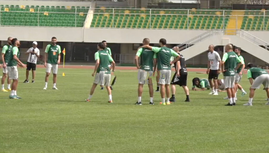 وكان المدرب الوطني، جمال بلماضي، قد قام بتنظيم حصة تدريبية خفيفة لفريقه بعد وصولهم إلى لومي، بهدف التخلص من تعب الرحلة، وانتهت هذه الحصة بمباراة تطبيقية بين اللاعبين.