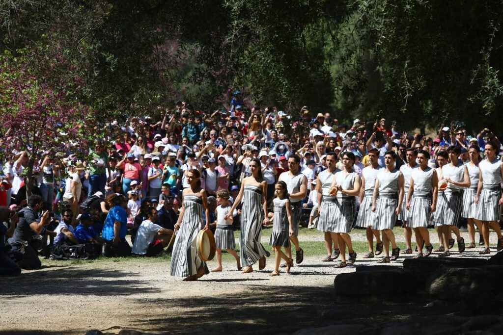 وفي كلمته، أشار رئيس اللجنة الأولمبية الدولية، توماس باخ، إلى أهمية الأولمبياد كرمز للأمل في هذه الأوقات الصعبة، مشيراً إلى أن الشعلة الأولمبية تجسد هذا الأمل والتوحيد بين الشعوب ، كما قام بطل التجديف الأولمبي اليوناني، ستيفانوس نتوسكوس، بتسليم الشعلة إلى السباحة الفرنسية لور مانودو، كممثلة للمدينة المضيفة باريس .