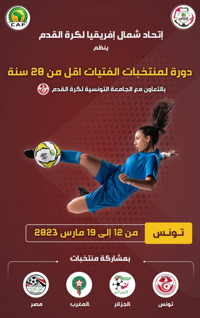 جرت اليوم الأربعاء عبر منصة التواصل المرئي “زووم” عملية سحب قرعة دورة اتحاد شمال افريقيا لكرة القدم لمنتخبات الفتيات تحت 20 عاما المقررة بتونس من 13 الى 18 مارس 2023 بالتعاون مع الجامعة التونسية لكرة القدم وذلك بملاحظة عن بعد من ممثلي مختلف الاتحادات الوطنية الأعضاء والمنتخبات المشاركة.