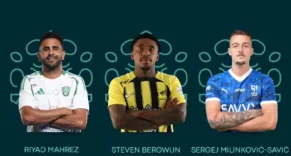 إلى جانب محرز، ينافس على الجائزة الهولندي ستيفن بيرغوين، نجم اتحاد جدة، الذي سجل الهدف الرابع لفريقه في شباك الاتفاق، بعد سلسلة تمريرات متقنة اختتمها بتسديدة مذهلة.