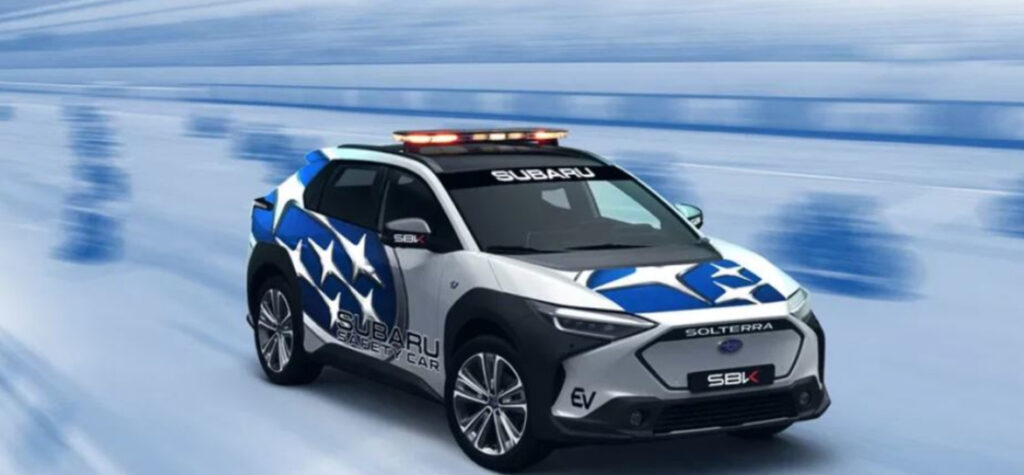 تم اختيار سيارة سوبارو سولتيرا لتكون سيارة الأمان الرسمية لبطولة العالم للدراجات النارية (Superbike) لعام 2025، مما يجعلها أول سيارة كهربائية تُستخدم لهذا الغرض في تاريخ البطولة.