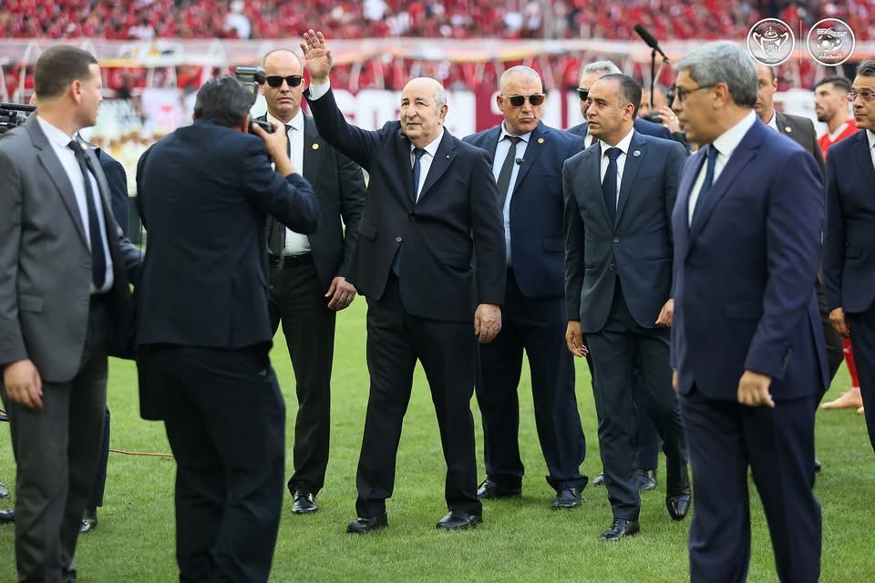 السيد الرئيس نزل إلى أرضية الميدان وسط ترحيب جماهيري كبير، حيث صافح لاعبي الفريقين وطاقمهما الفني، في لفتة تؤكد دعم الدولة للممارسة الرياضية وتشجيعها للتنافس النزيه، لاسيما في المحطات الكبرى التي تجمع الجزائريين حول شغفهم الأول: كرة القدم.