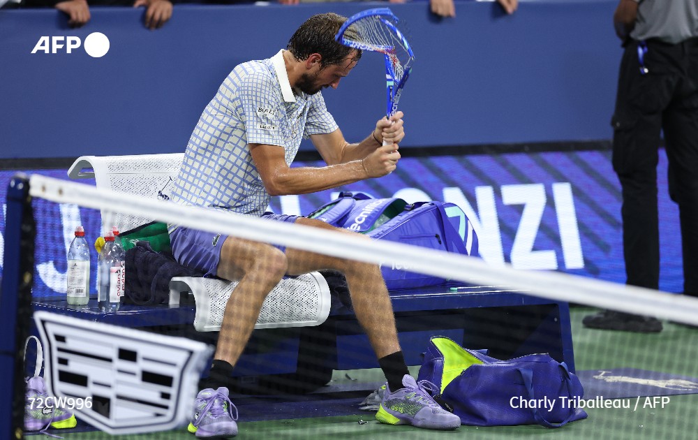 مدفيديف صبّ جام غضبه على الحكم والجماهير، ثم حطم مضربه بعد نهاية المباراة.