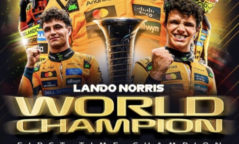 تُوّج البريطاني لاندو نوريس، سائق فريق مكلارين، ببطولة العالم للفورمولا وان لموسم 2025، بعد سباق ختام مثير في جائزة أبوظبي الكبرى، حسم فيه الأمور لصالحه باحتلاله المركز الثالث. هذا الإنجاز جاء بعد صراع ثلاثي محتدم مع زميله أوسكار بياستري وسائق ريد بُل ماكس فرستابن، الذي أنهى سباق أبوظبي في الصدارة.