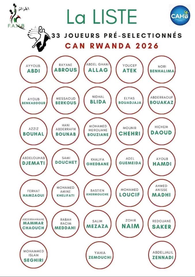 أعلنت الاتحادية الجزائرية لكرة اليد اليوم السبت عن القائمة الموسعة للمنتخب الوطني استعدادًا لبطولة إفريقيا المقررة في رواندا شهر جانفي 2026.