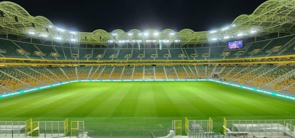 وبلغت نسبة الإنجاز 90٪ للملعب، بينما بلغت نسبة إنجاز قاعة المحاضرات 98٪. وخلال زيارته للملعب و لاحظ الوزير نقصًا في اليد العاملة المؤهلة أثناء الفترة الليلية وألح على ضرورة تكثيف العمل وزيادة وتيرة الأشغال.